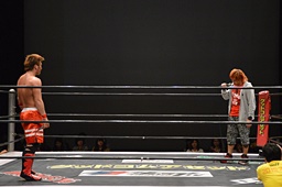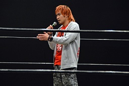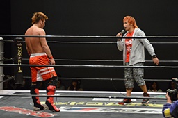 イサミ「足元も見えないような奴なら、うちの団体にはいらないから。自分の団体を大事にできるヤツが、足元をしっかり見て俺に向かって来るかどうかをお前とやって確かめるよ。」(右写真)