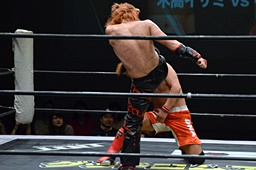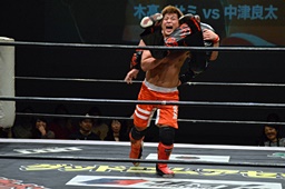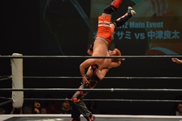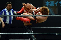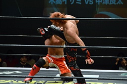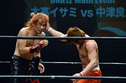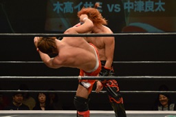 イサミラリアット、中津かわしてジャーマン(左写真)、