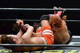 サイドバスターで叩き付ける(左写真)。カウント2。