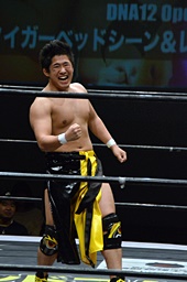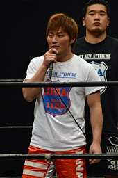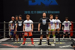 代表あいさつは今日をもってDNAを卒業する中津良太(左写真)。「早いものでDNAも12回目になります。この12回目でDNAを卒業する人が一人います。そうです僕です。大好きなDNAという家を抜ける決断しました、覚悟しました。その覚悟を感じてほしいなと思います。あとBASARAに行くことが決定したわけじゃないので、イサミと闘って『よし!』と言ってもらえればBASARAに行けるので。言ってもらえなければBASARAにも行けない、DNAも卒業で途方に暮れますので、そうならないように応援よろしくお願いします!」