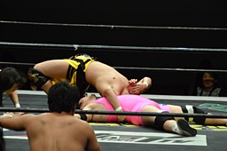 ノーザンライトスープレックスホールド(右写真)、カウント2。