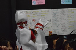 最後はみんなで「ハッピーバースデー」を合唱してなんとか締まった(左写真)。
