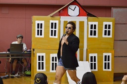 「ファンキー・モンキー・ベイビー」が流れると戻ってくるのがスターの宿命か(右写真)。