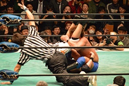 佐々木ジャーマンスープレックス(右写真)、カウント2。15分経過。