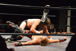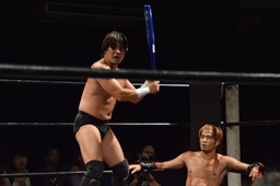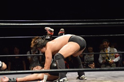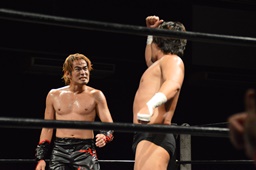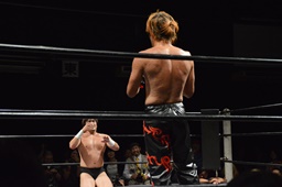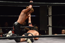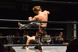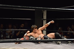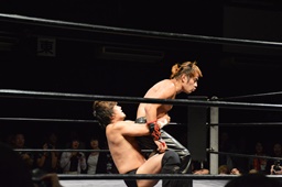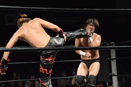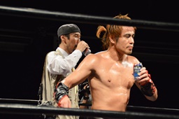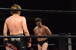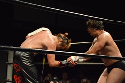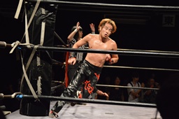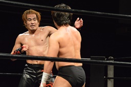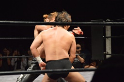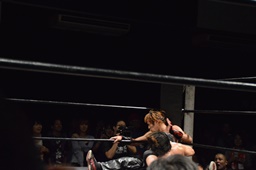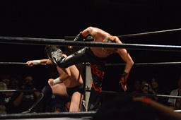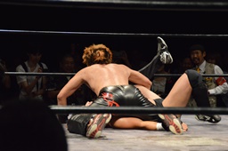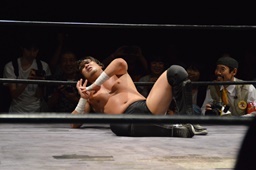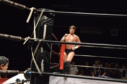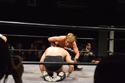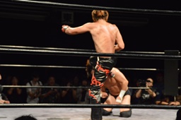 丸山バック取って(左写真)ジャーマン、バズソーキック、カウント2。