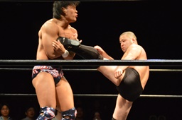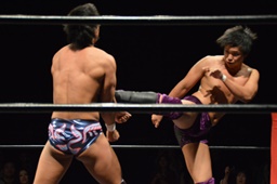 関根ミドルキック、遠藤逆水平(右写真)。