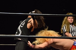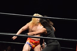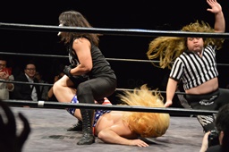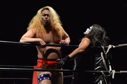 練馬はスコーピオンデスロックを解いてぶん殴り(右写真)、