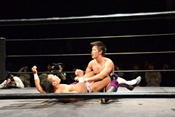 最終的にはこの形で叩き付ける(右写真)、カウント2。