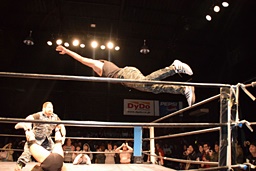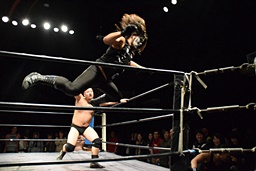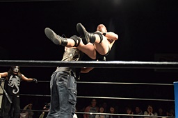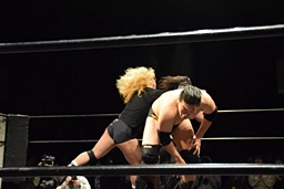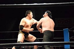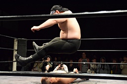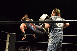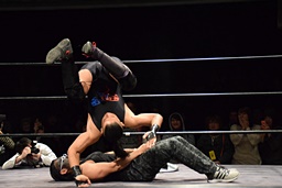 リューイチンはスタナー狙うが練馬はブロック、スコーピオンデスドロップに(右写真)。