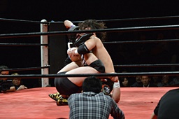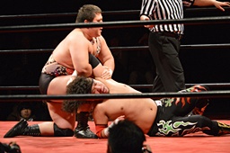逆さ押さえ込みに(左写真)、カウント2。