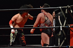 立たせてからDDT(左写真)、カウント2。