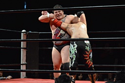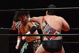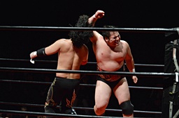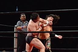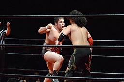 久保はゴロースープレックス(左写真)、カウント2。