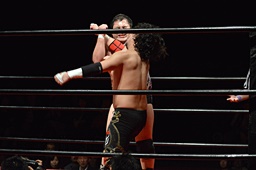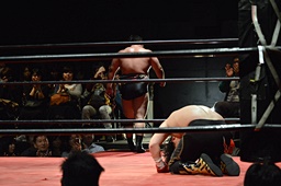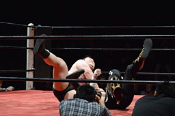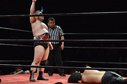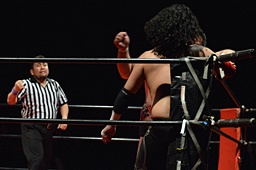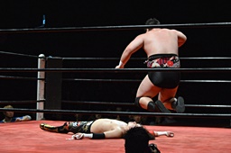 ダイビングフィストドロップ(右写真)、カウント3。