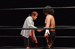 そこに木イサミ。「久保君、やっぱり僕は君のプロレスが好きだわ。真っ直ぐに言います。僕とプロレスしませんか?僕達とプロレスしませんか?プロレスリングBASARAに来ませんか?」(右写真)