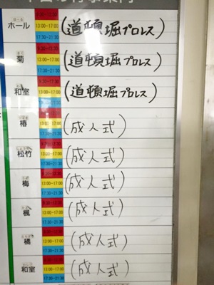 11時で切り上げ港区民センターに。2階では成人式らしい。