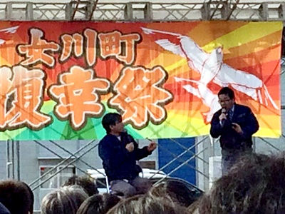 駅の周りが「海ステージ」でメイン会場。まずは「今日限定」の女川駅駅弁購入。「高政」とももクロのコラボ笹かまも売ってたので購入。