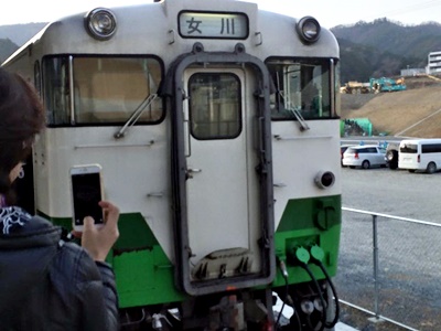 10時48分、5分遅れで昨日再開業したばかりの新しい女川駅に到着。