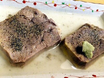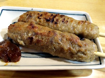 帰りも小牛田で東北本線に乗り換え、仙台駅には18時46分着。時間が1時間ほどあるので駅の「喜助」で飲むことに。まずはこういう時(定食はいらない)じゃないと食べないであろう牛たんつくね。