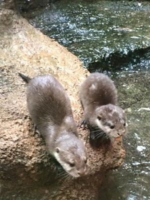 10時から赤ちゃん展示開始ということだったが9時50分にカワウソ舎に着いたらもう出てきてた。もう産まれて半年だが、1頭だけ発育遅れかえらい小さい。10頭もいるとほんと見飽きない。パラダイスだ。これが目的だったような気もしてくる。