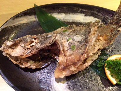 アラカブの唐揚。あとアンキモをあてに「獺祭」飲む。カワウソ見たし。