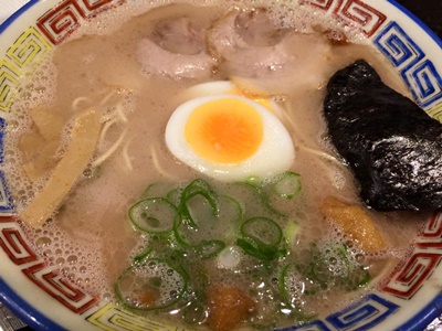 渡辺通4丁目まで戻り久留米の「大砲ラーメン」の支店で「昔スープ」のラーメン食う。うまかったので替え玉も。