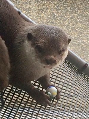 中に入るとカワウソ舎に直行。親子6頭元気に遊んでいた。