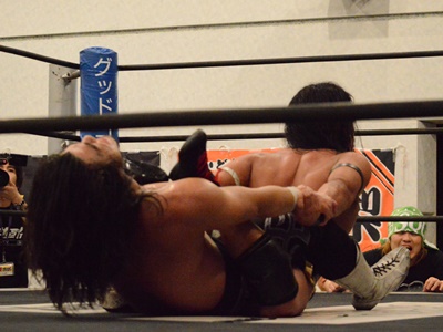 セミの彰人vs佐々木のタイトルマッチ前哨戦が凄い30分だった。地方でこれかー。本番じゃないとはいえいいもん見れたな。そしてメインは見事チームドリフがタイトル奪回。さすがに今日は「リマッチ」うんぬんはなし。