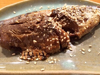 対馬産アナゴの白焼き。板前一人、配膳一人の店だが、いい味。ここは当たりだった。