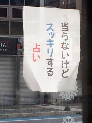 九州遠征も最終日。駅に行く途中にあった占い屋の張り紙。まあ、そうかもね。