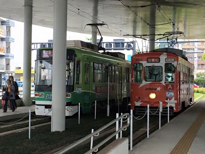 「熊本城前」のアナウンスで降りると見たことない風景。あれ?しかも入城口は須戸口門。あれれ?とりあえず「石垣コース」で本丸御殿・天守・宇土櫓に。「櫓群コース」で須戸口門に戻る。そのまま外に。しかし時間はある。外周を回って監物櫓から二の丸に。で、このアングル。やっぱりこれだよ。櫨方門から再入城はせずに坂を下りると観光スポットらしい「城彩苑」というのが桜馬場にできていた。なんかコスプレがやたらいたけど。さらに歩くとよく見た風景。電停名は「花畑町」。後で調べたら2011年に「熊本城前」が「花畑町」に、「市役所前」が「熊本城・市役所前」(アナウンスは「熊本城前」)に改称になったらしい。7年ぶりだからなあ。いろいろ変わるわな。でも紛らわしい。