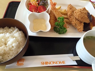 マサ、ココア、くるみの3頭は団子になって寝てたし、チョコ丸(?)はすぐに隠れたので昼飯を食いに行くことに。動物園内のレストランでは随分唐揚を推していたが、その時点では意味が分からないのでパス。普通にミックスフライ定食。