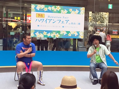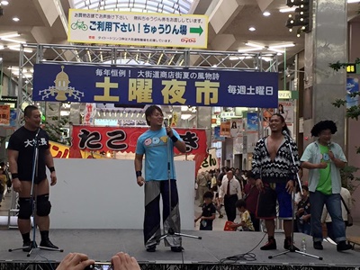 17時半になったのでステージ前に戻る。その後路上プロレスに発展するのはわかっているのでイスには座らない。トークはそこそこにすぐに路上プロレス開始。去年はケニーが参加してたんだよなあ・・・。観戦記。