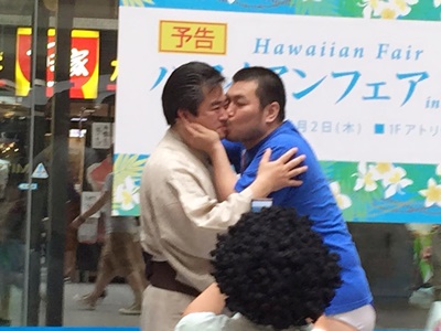 「注目されるためには誰かにチューするしかない」ということでこのイベントを企画したと思われる三越の近藤販促担当課長が犠牲に。