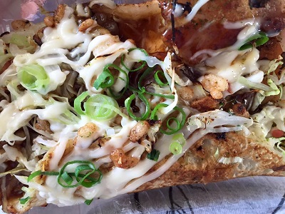 早めになんばに着いたが「わなか」に行くほど腹へってない。なので交差点のとこのキャベツ焼きにする。