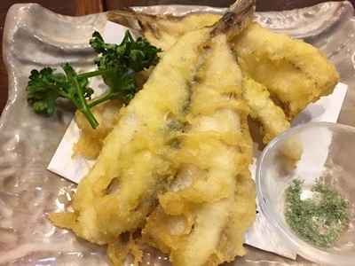 バスで新潟駅に戻る。帰りの新幹線まで2時間ほどあるが、便利なので駅前の「安兵衛」に。メギスの天ぷら。