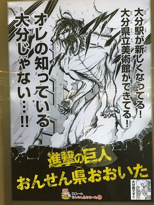 噂の大分県×「進撃の巨人」のバカコラボ。羽田で見れるとは知らなかった。
