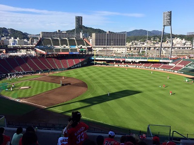 開門が15時半と思ってたら今日は15時だった。自由席で空き探すがなかなか見つからない。すると親切なおじさんが「そこ空いてるよ」と教えてくれ、なんとか座席確保。しかし自由席だとこういう苦労するから三塁側(本来は相手チーム側だが広島では全部赤)の指定席にすべきだった。