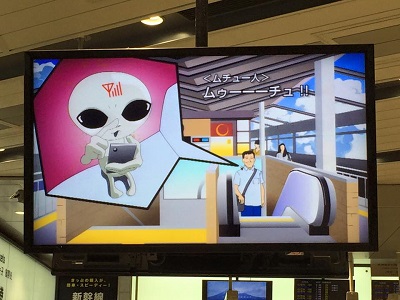 みどりの窓口前のビジョンで何やらアニメが上映中。