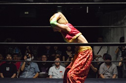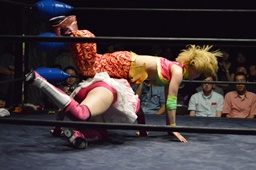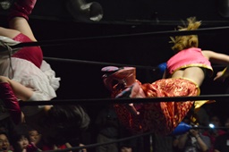 そのままトップロープを走って魔法少女キック(右写真)。これは凄い。