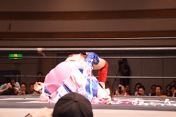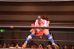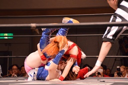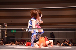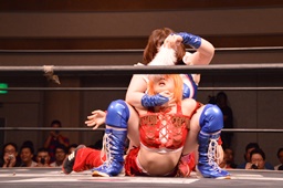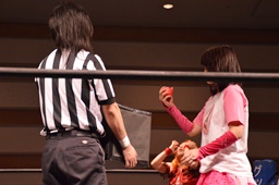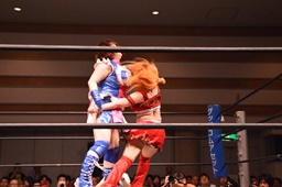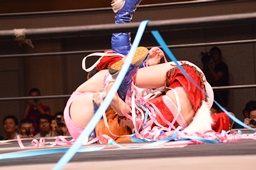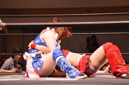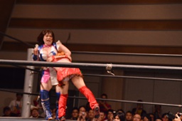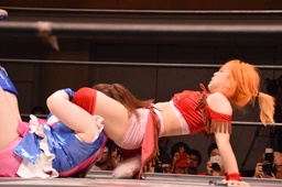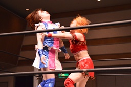 中島ロープに振る、のの子Kズプレス(左写真)、カウント2。