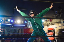 山下「あずさ(仮)、デビュー決まって本当におめでとう。嬉しい気持ちも束の間ということで、相手は私ですので。日頃、ご飯とかえーりんとか3人で行くぐらい仲いいんですけど、でもリング上では違うし、デビューしたら関係も友達から戦友になると思うので、新宿決まったので時間がまだあるので準備して。私もデビュー戦の相手を務めるのは初めてだし、それがあずさ(仮)でちょっと嬉しいので、私も準備するので、お互いぶつかり合いましょう。」