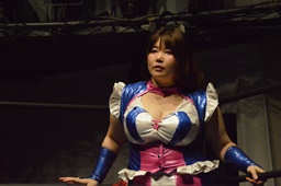 ハイパミ「前回のの子さんと巨乳とヒーローという少年の2つの夢が詰まったタッグ、乳ヒーローズを結成しましたが、今日はどちらが上かをはっきりさせる。イニシアチブを握るのはこの私だ!」(右写真)