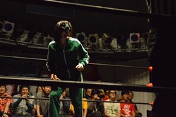 もう一発(左写真)、のの子ブロックしてロープに飛ばす、