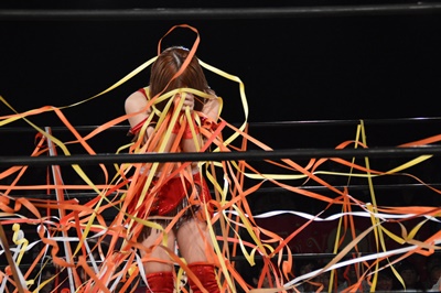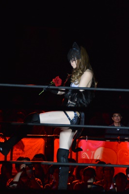 赤井沙希がバラ一輪手にリングイン(右写真)。