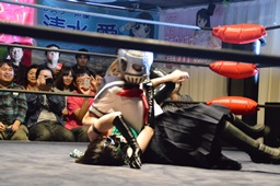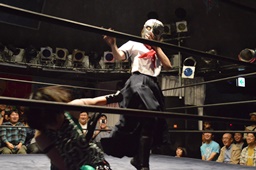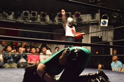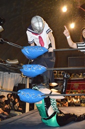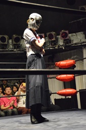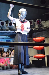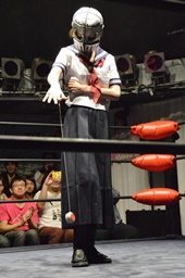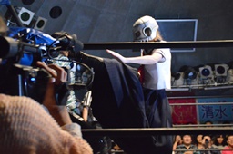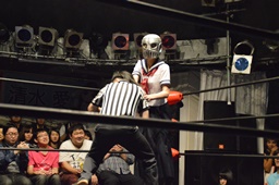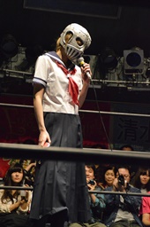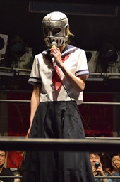 赤宮サキが鉄仮面着けてリングイン(右写真)。