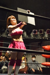山下「アカネちゃん、強い!でもメッチャ楽しかった。そして挑戦権が取れて、来年のイッテンヨンのホールまで守ればメインで初代のベルトに挑戦できる。私の好きな言葉に『NEVER GIVE UP』と『有言実行』があります。私は後楽園ホールでチャンピオンになりたい。そうやって有言して実行していけるように頑張ります。やるしかありません。絶対に守って後楽園のメインに立って、ベルトを獲った姿を見せたいと思います!」(左写真)