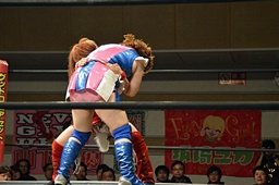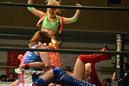 のの子パイグリー(右写真)、カウント3。坂崎失格。