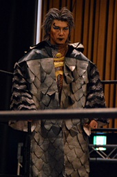 ミウラは二段蹴りをかわしてラリアット(左写真)、カウント2。