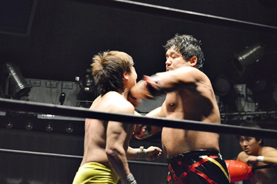 FUMAエルボー(右写真)、イサミもエルボー。
