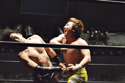 FUMAブレーンバスターで石川を投げる(右写真)。